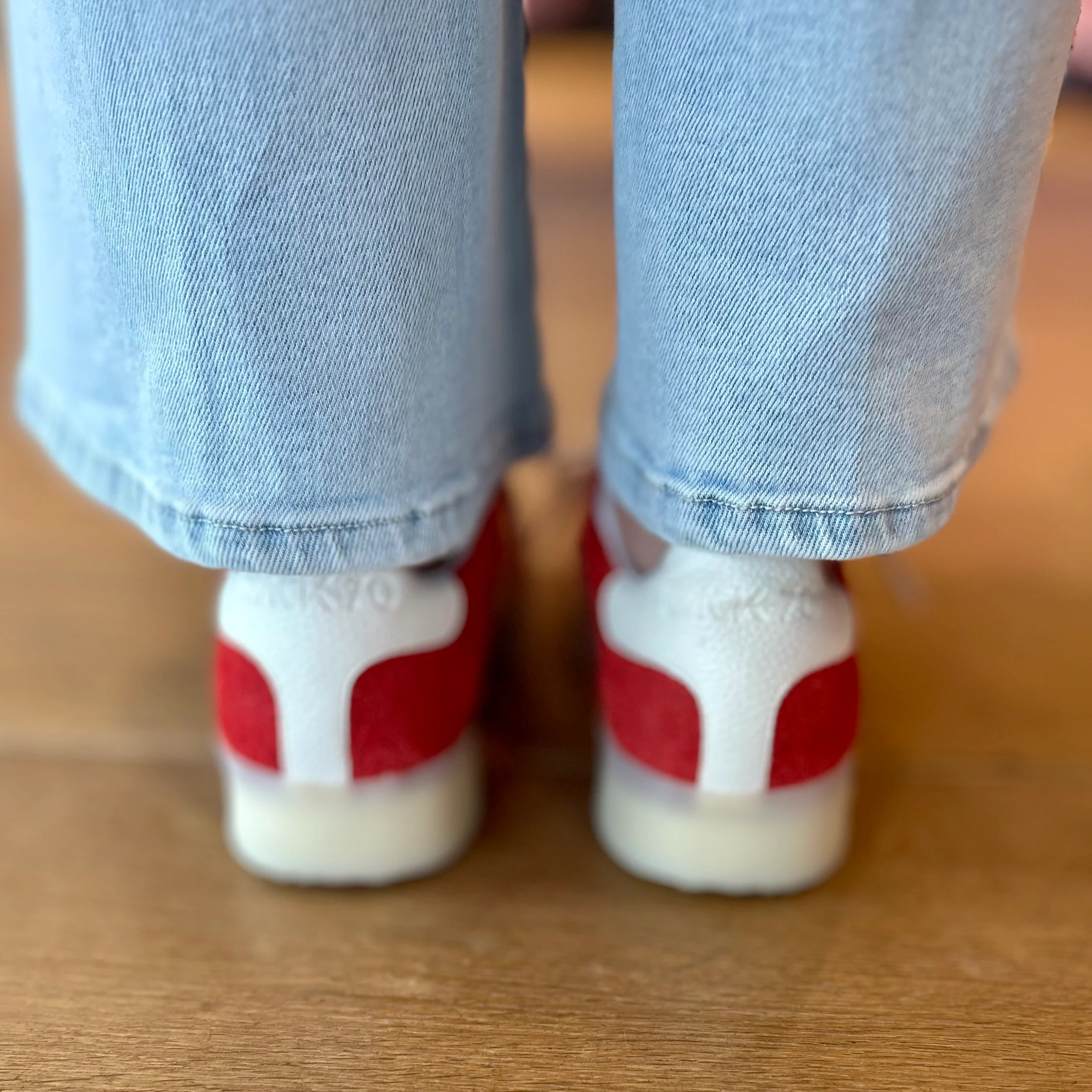 Experience retro style and comfort with the Back 70 Boston Red. Made with premium suede material and featuring a stylish retro red design, these shoes are perfect for adding a pop of color to any outfit. The milky white bottom provides both durability and a sleek finish. Elevate your shoe game today.
