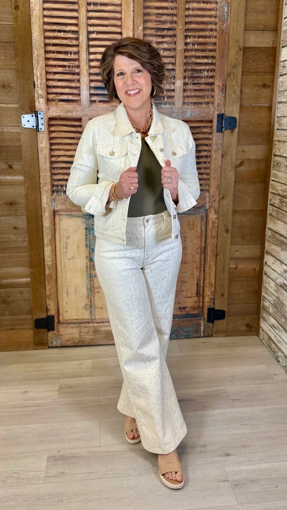 The Dear John Ainsley Jacket in Wheat Lace is a sophisticated layering essential that effortlessly elevates any wardrobe. Crafted with delicate lace detailing, this jacket combines timeless elegance with modern versatility. Perfect for transitional seasons, it pairs beautifully with everything from casual basics to dressed-up pieces. The warm wheat tone adds a soft, flattering dimension that complements a range of skin tones and color palettes. Whether you're layering over a simple tee or a flowing dress, this jacket delivers polished style with understated charm.