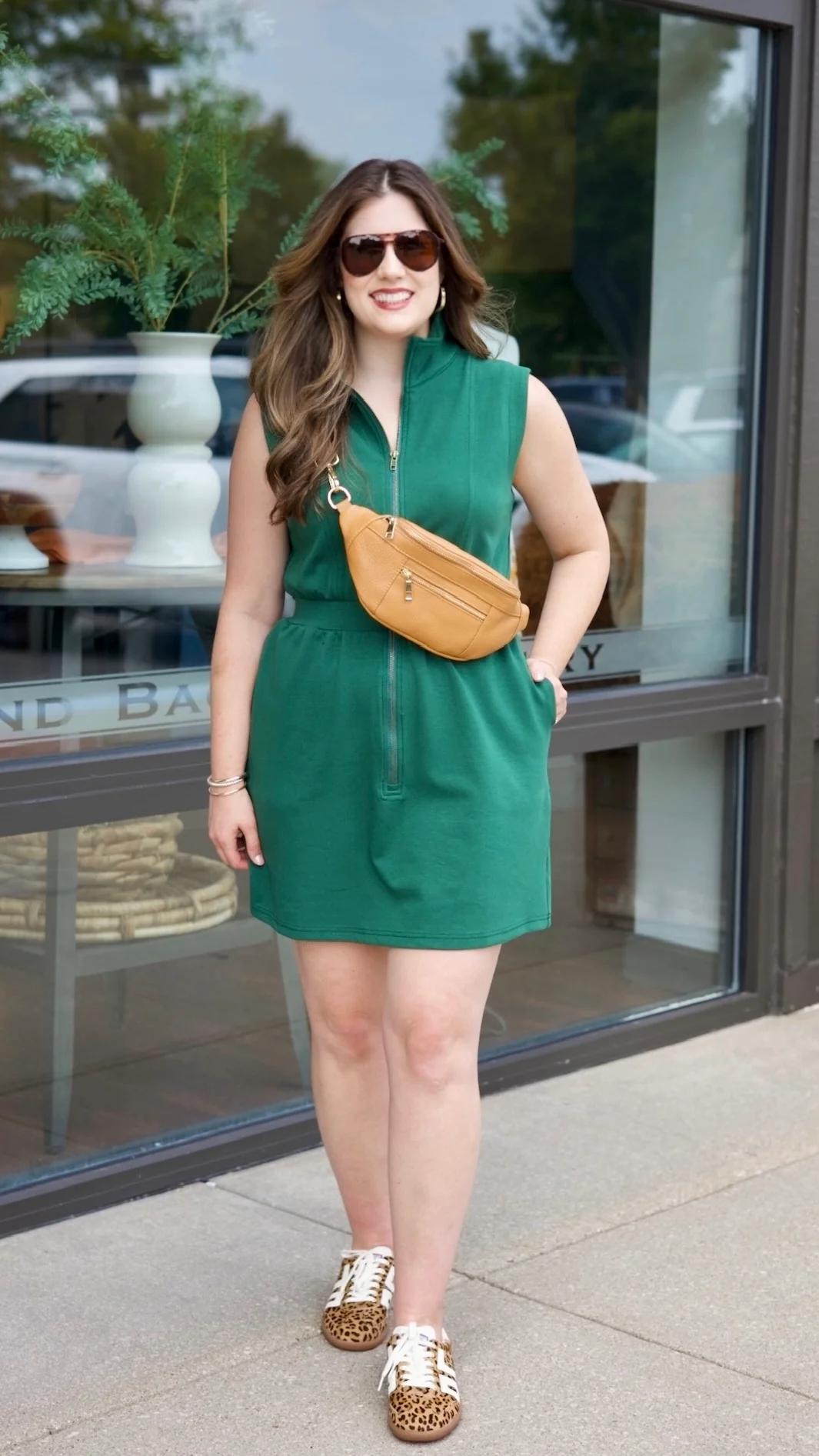 This hunter green athletic dress features a convenient zip and a stylish mock neck, combining comfort with a sporty edge. Its versatile design makes it perfect for casual outings or relaxed days, offering an adorable yet classic look that’s easy to wear and effortlessly chic.